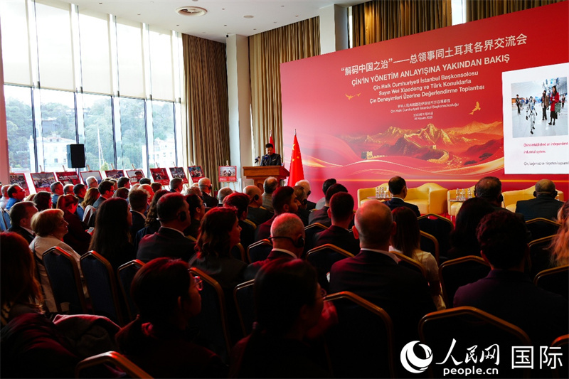 人民網(wǎng)伊斯坦布爾11月27日電 (記者李明)當?shù)貢r間11月26日,中國駐伊斯坦布爾總領(lǐng)事館舉辦“解碼中國之治”——總領(lǐng)事同土耳其各界交流會。中國駐伊斯坦布爾總領(lǐng)事魏曉東出席并發(fā)表主旨演講。土工商界、智庫、媒體、高校代表,領(lǐng)區(qū)中資企業(yè)和機構(gòu)負責人等160余人出席。