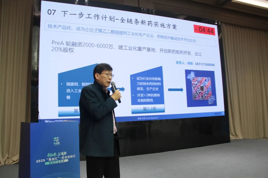 項目路演作為核心環(huán)節(jié),六大高精尖項目同臺競技,展現從“0到1”的突破性創(chuàng)新實力。抗癌納米脂質體制劑新材料項目由深耕生物醫(yī)藥領域多年的楊鋒博士領銜,其獨家單分散小分子量PEG工業(yè)化量產技術,一舉突破脂質體納米顆粒(LNP)生產瓶頸,填補國內外產業(yè)化空白。公司主營PEG鏈接劑、ADC Linker、mRNA疫苗輔料等核心產品,客戶涵蓋諾華、禮來等國際巨頭,已獲國家級科技型中小企業(yè)認定,未來聚焦個性化腫瘤治療全球化布局。