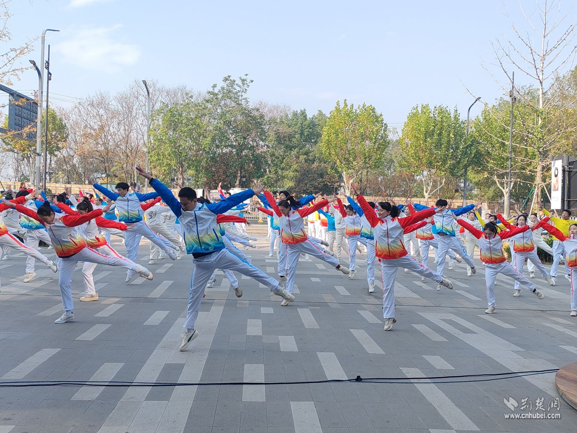 伴隨著氣勢恢宏的《領(lǐng)航》旋律響起,由武昌黃鶴之星文化驛站成員、轄區(qū)文藝團(tuán)隊及武漢音樂學(xué)院學(xué)生組成的140人表演隊伍翩然起舞。舞者們身著亮麗服裝,步伐整齊有力,動作舒展昂揚(yáng),如一面面流動的旗幟,在冬日的陽光下?lián)]灑著自信與熱情。在武漢歌舞劇院許峰老師的現(xiàn)場帶領(lǐng)下,整場表演張弛有度、情感充沛,生動詮釋了新時代的朝氣與力量,贏得了在場觀眾陣陣掌聲與喝彩。