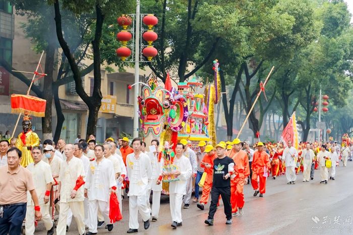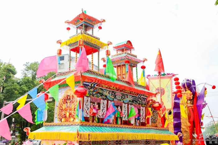 今年巡游的旱龍舟長6米長、有4.36米高,主要用竹篾扎制,由龍頭、中倉、龍尾等組成,全舟分上中下三層,以“屈原”和“龍”為中心,72神像環(huán)繞。舟身下層有24名“水手”,象征著24個(gè)節(jié)氣;中層的12“花神”,代表一年12個(gè)月。每一具神像承載著澤林民眾的生活智慧以及祈福求祥的善良愿望。