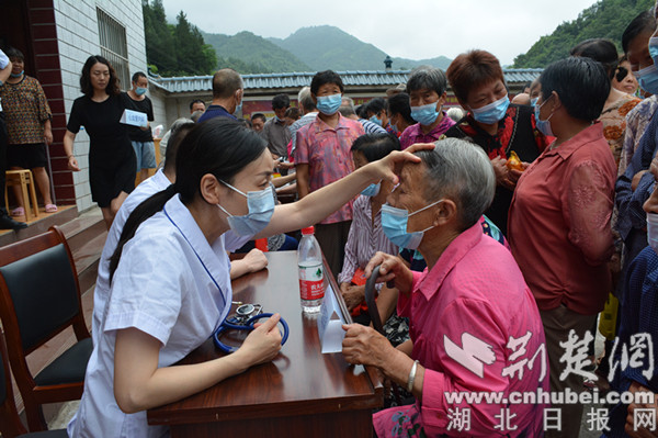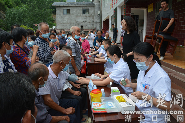楊柳村位于位于鄖陽區(qū)西南部的大山深處,距離十堰市區(qū)50余公里,是十堰市稅務局鄉(xiāng)村振興聯(lián)系點,村里以老年人居多。聽說市人民醫(yī)院的專家要來義診,村民們早早就來到村委會,在市稅務局駐村工作隊的精心組織下,佩戴口罩排起了長隊。簡短的介紹儀式結束后,來自市人民醫(yī)院心血管內(nèi)科、兒科、消化內(nèi)科、睡眠醫(yī)學科、內(nèi)分泌科等專業(yè)學科的8位專家便立即開始為村民診療。