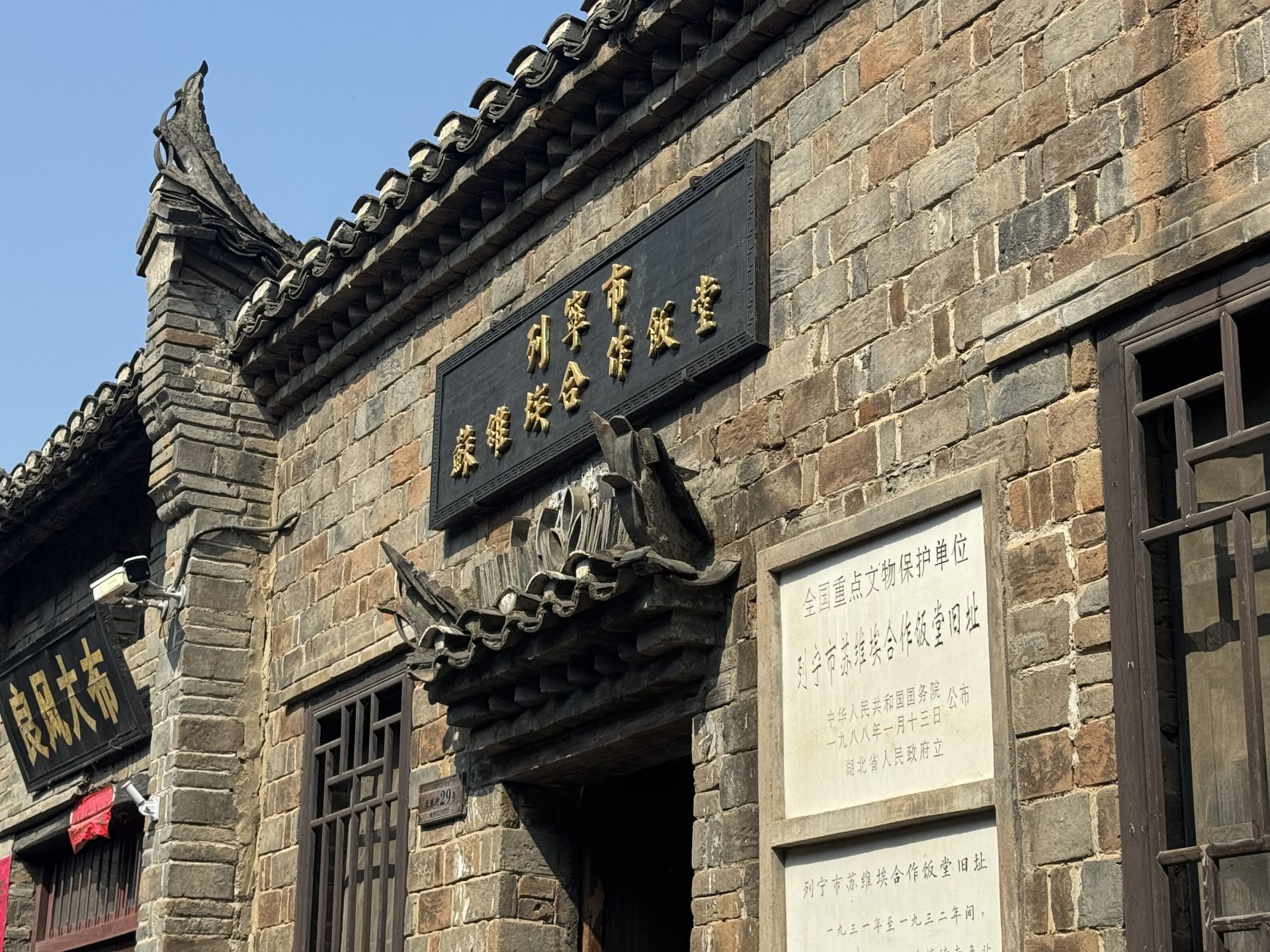 “小小黃安,人人好漢。銅鑼一響,四十八萬。男將打仗,女將送飯……”沿著紅安縣七里坪鎮(zhèn)長勝街老街的青石板路一路探訪,從街口到街尾只有400米長,卻有多個“國寶”單位:紅四方面軍指揮部舊址、七里坪工會舊址、鄂豫皖蘇維埃銀行、蘇維埃合作飯?zhí)谩⒍踉ネ钪形魉幘值戎匾锩z址……
