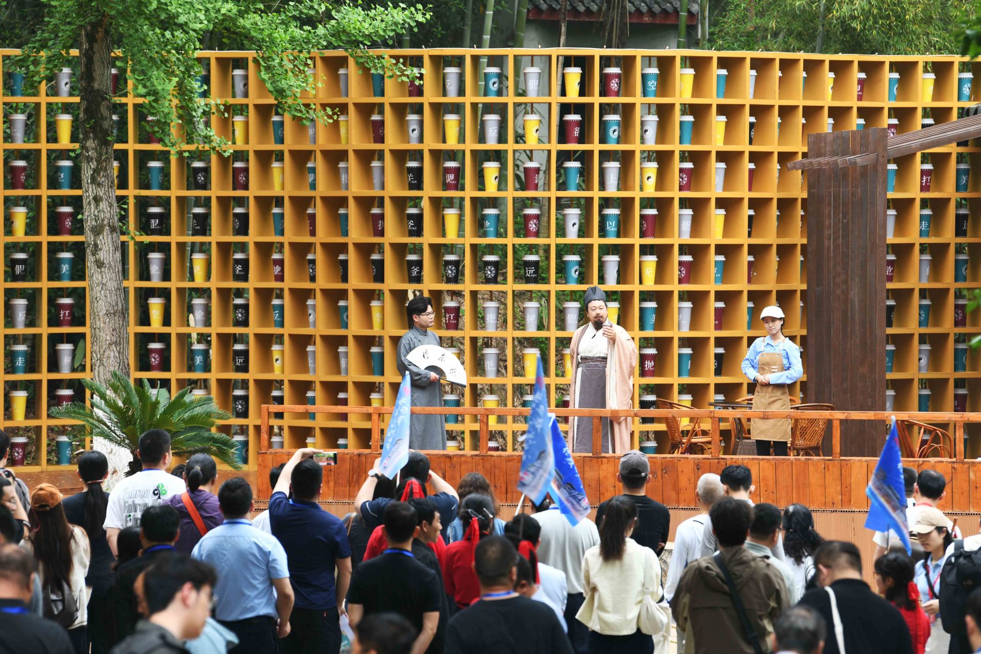 4月26日晚,三國赤壁古戰(zhàn)場(chǎng)景區(qū),《赤壁·借東風(fēng)》實(shí)景演藝劇全球首演。一名“說書人”用現(xiàn)代人的口吻,串起一部三國與現(xiàn)代的穿越?。何枧_(tái)上,演員、道具、光影重現(xiàn)“草船借箭”“苦肉計(jì)”“空城計(jì)”等歷史典故;看臺(tái)上,游客化身將士,隨劇情節(jié)奏拍打赤壁非遺——腳盆鼓(相傳為孫劉聯(lián)軍赤壁之戰(zhàn)鼓舞士氣的樂器)……現(xiàn)場(chǎng),觀眾與演員深度融合,沉浸式體驗(yàn)三國英雄氣概,仿佛一場(chǎng)跨越千年的對(duì)話。