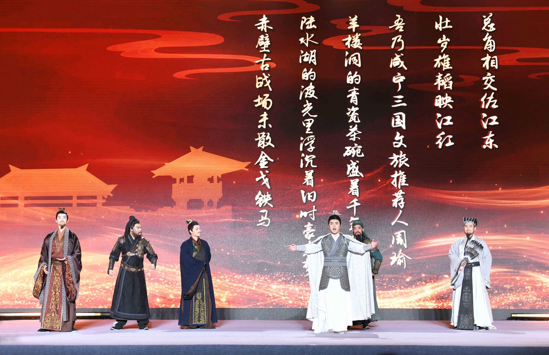 “三國六城,今日結(jié)盟!與君共同開啟,荊楚三國文化之旅。”啟動(dòng)式上,身著古裝的文旅推薦官,化身三國英雄劉備、關(guān)羽、張飛、諸葛亮、孫權(quán)、周瑜等,穿越歷史時(shí)空,分別代表武漢、荊州、宜昌、襄陽、鄂州、咸寧對(duì)外推介各地三國旅游景點(diǎn)和線路。