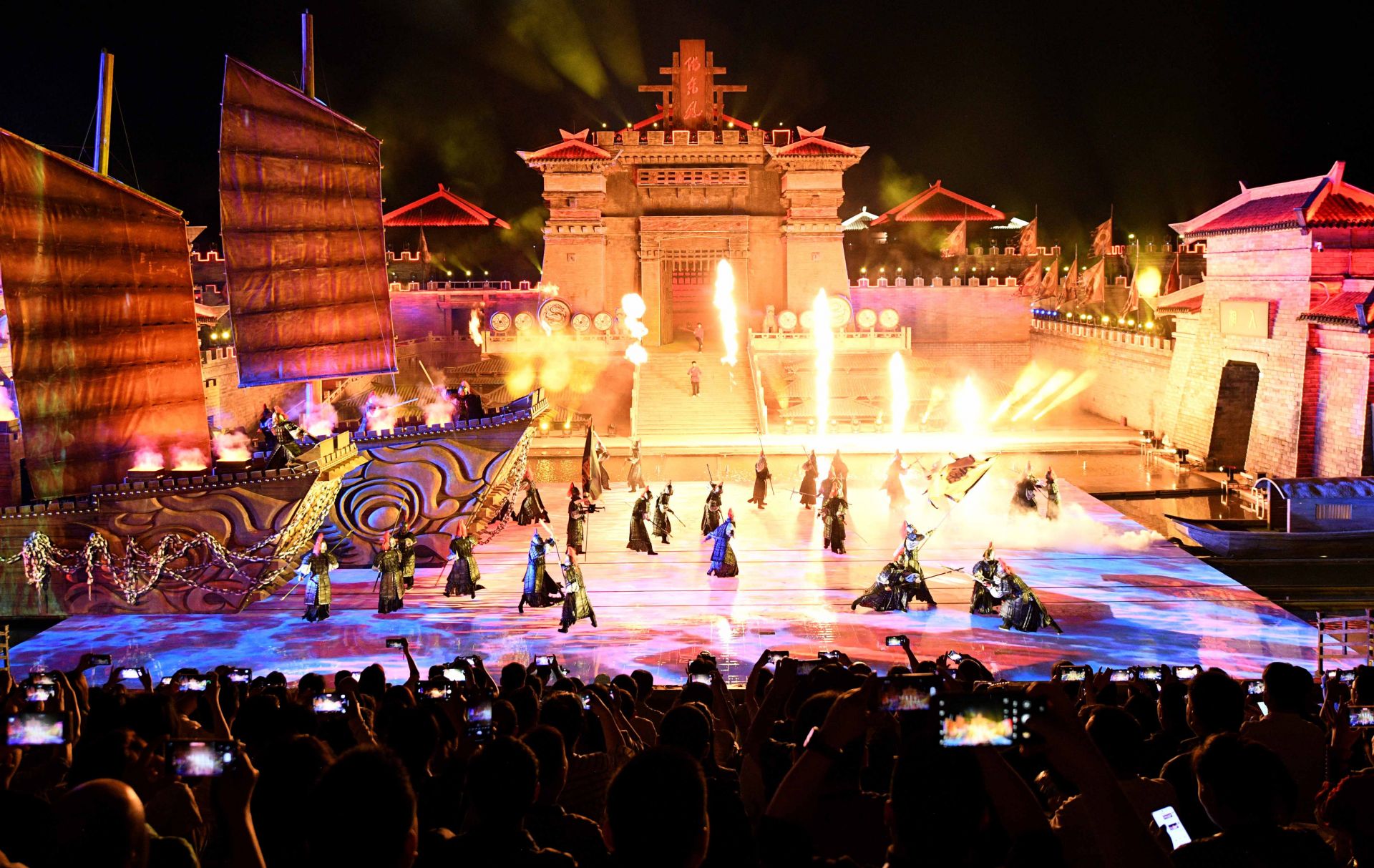 熊熊燃燒的烈火,箭矢破空的銳響,戰(zhàn)鼓擂動(dòng)的轟鳴,配上光影、水霧等特效,讓人仿佛置身金戈鐵馬、智謀激蕩的三國古戰(zhàn)場(chǎng),親歷那場(chǎng)“以少勝多”的赤壁之戰(zhàn)。