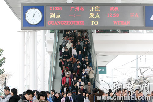 中午11時(shí)46分,列車?繌V州北站,歷時(shí)僅2小時(shí)46分鐘。在站臺(tái)上,記者遇到了一位帶著小孩的江西九江乘客,她興奮告訴記者,“我是慕名專程到武漢坐高鐵快車到廣州探親的,沒想到不到3個(gè)小時(shí)就到了,簡(jiǎn)直不敢想!