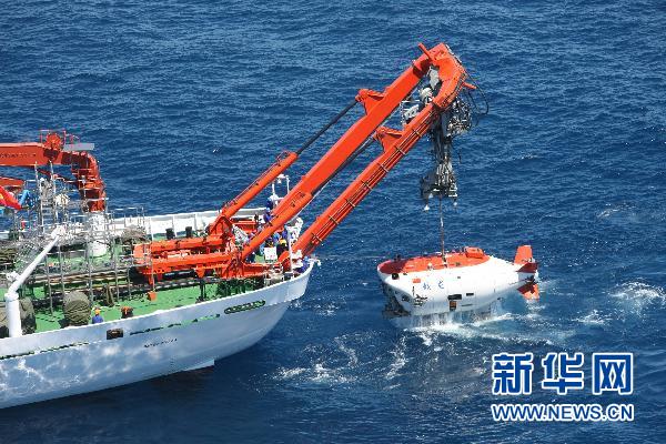這是“蛟龍?zhí)枴鄙詈]d人潛水器于2010年7月在中國(guó)南海執(zhí)行一次成功下潛后出水。 新華社發(fā)(中國(guó)大洋協(xié)會(huì)供圖)