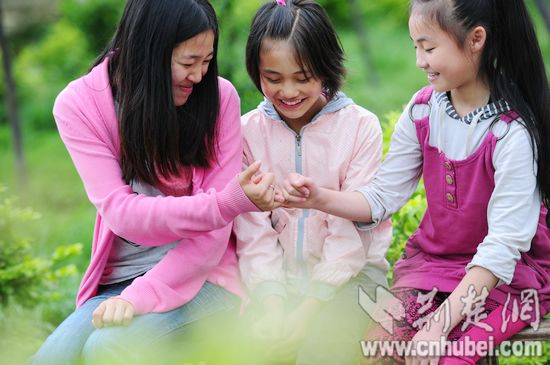 27日上午,坐在本禹希望小學操場邊,劉小慶與學生羅帥蘭勾了勾手指。