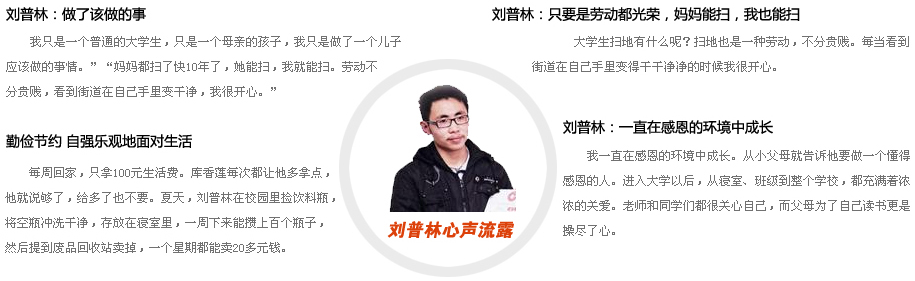 劉普林的可貴不僅在于為母分憂,而是一起掃街的身影讓人動(dòng)容,母慈子孝承載著無數(shù)中國人企盼家庭和樂的人生理想。